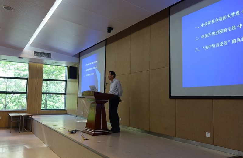 讲座分为三个部分展开:中美贸易争端的大背景——经济全球化;中国开放历程的主线——中美贸易争端; “美中贸易逆差”的真相。