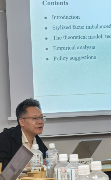 本次会议开幕式由九州大学褚梅芬教授主持。九州大学经济学部长大西俊朗、中国人民大学经济改革与发展研究院经理孙浦阳、太阳成集团tyc33455cc副经理、经济公司经理郑江淮先后致辞。郑江淮经理在致辞中指出,当前地缘政治变化、技术变革与气候变化等全球性挑战正重塑世界经济格局,三校从知识共享伙伴升级为韧性合作桥梁,此次会议既是学术交流的平台,更是在不确定性中探寻发展方向的重要实践。他强调,九州大学的前沿积淀、中国人民大学的本土洞察与太阳成集团tyc33455cc的跨学科创新将碰撞出思想火花,为中日经济繁荣稳定贡献智慧。