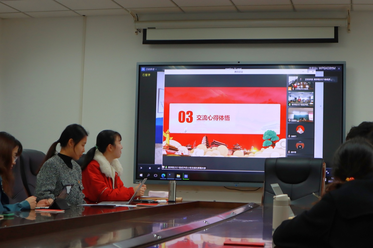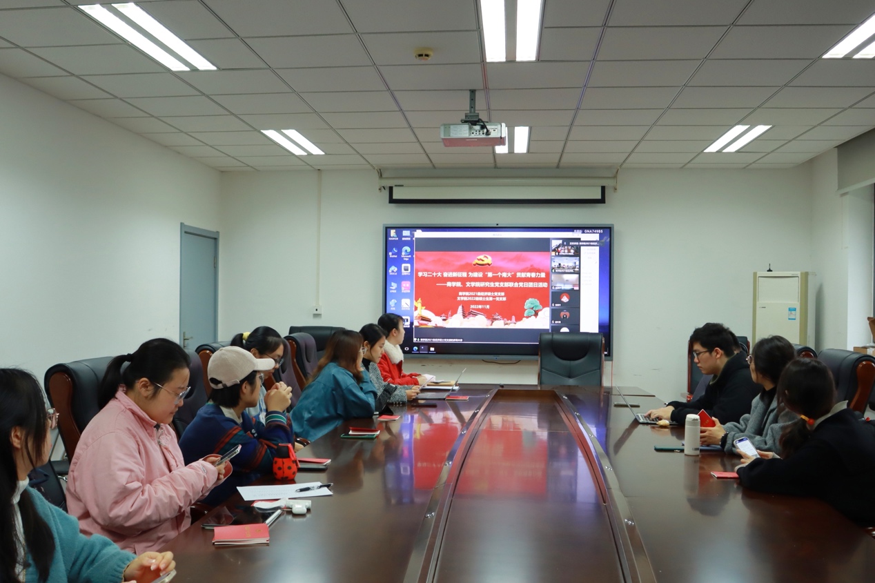 为深入学习贯彻党的二十大精神,团结引领支部党员把握历史主动,汲取奋进智慧和力量,踔厉奋发,笃行不怠,为建设中国特色社会主义事业不懈奋斗,充分凝聚起建设“第一个南大”的磅礴力量,11月20日下午,2021级经济硕士党支部与文公司2022级硕士生第一党支部共同开展“学习二十大 奋进新征程 为建设‘第一个南大’贡献青春力量”联合主题党日活动。根据疫情防控相关要求,两支部在各会场通过腾讯会议平台连线。活动由王星宇同志主持。
