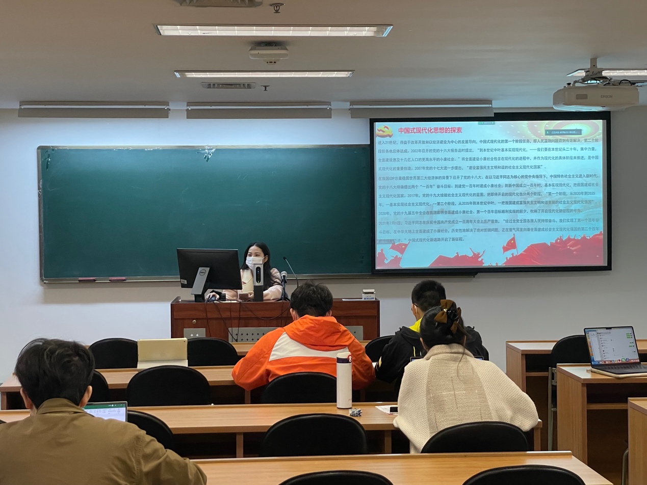 2021级经济硕士党支部岳雨琪、文公司2022级硕士生第一党支部邹雯倩分别围绕中国式现代化、二十大报告中的数字化表达等方面开展领学联学。岳雨琪从探索中国式现代化思想内涵等五个方面开展阐述,认为中国式现代化道路不仅是马克思主义经济学说同中国具体实际相结合的道路,也是现代化的一般理论与中国国情结合的道路,是发展中大国特有的现代化之路。邹雯倩同志从“1”个主题、“3”件大事等视角全面解读数码“201316426155325”的具体含义,并认为该数码是聚焦“五个牢牢把握”的数字化表达,有助于我们准确认知和把握党的二十大报告的精髓要义。