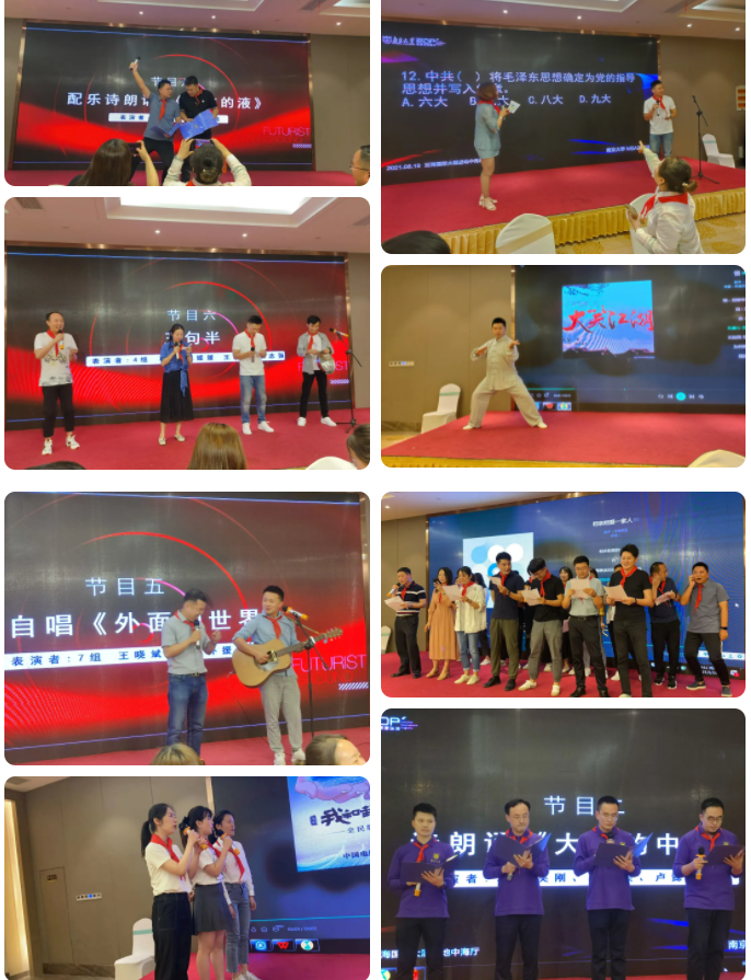 在2021年6月19日的晚上,太阳成集团tyc33455ccMBA2020级的同学们还在班委的牵头组织下,自发筹备举办了“庆祝建党100周年活动暨M2020班文艺联欢会”。各个小组的同学都积极上台表演,演出节目高达19个。演出形式十分丰富,有朗诵、弹唱、独唱、合唱、三句半、太极拳表演等等。同时,在晚会上还穿插了很多益智性的互动小游戏,使得现场气氛十分热烈。同学们在本次活动中既学习到了党史知识,又增进了友谊,还有了一个展现自我的机会。可以说,本次联欢活动举办的十分的成功。