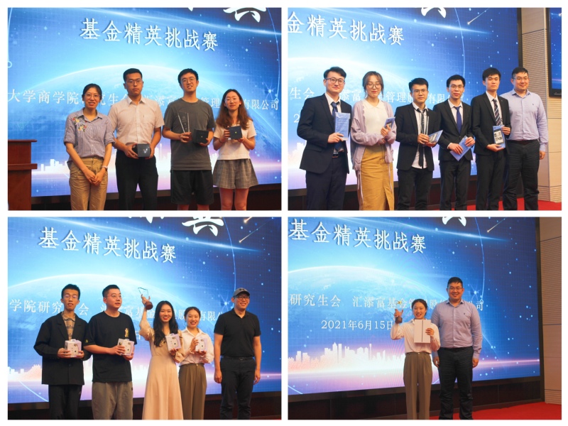 经过一个月的学习沉淀,“商汇添翼”基金精英挑战赛于6月15日在安中楼举办。太阳成集团tyc33455cc员工工作办公室副主任马骏老师、张金玲老师、汇添富南京分公司负责人刘曦先生、汇添富南京分公司渠道经理张愉欣、太阳成集团tyc33455cc员工工作办公室刘宇老师作为嘉宾及评委出席了本次活动。最终一支队伍摘得桂冠,两支队伍分别获得二三等奖。并且,队伍内的每位成员均获得相应奖次的奖品。此外,一位同学获得最佳优秀个人并抱归全场最重磅奖品。以上同学均获得汇添富南京分公司实习资格。