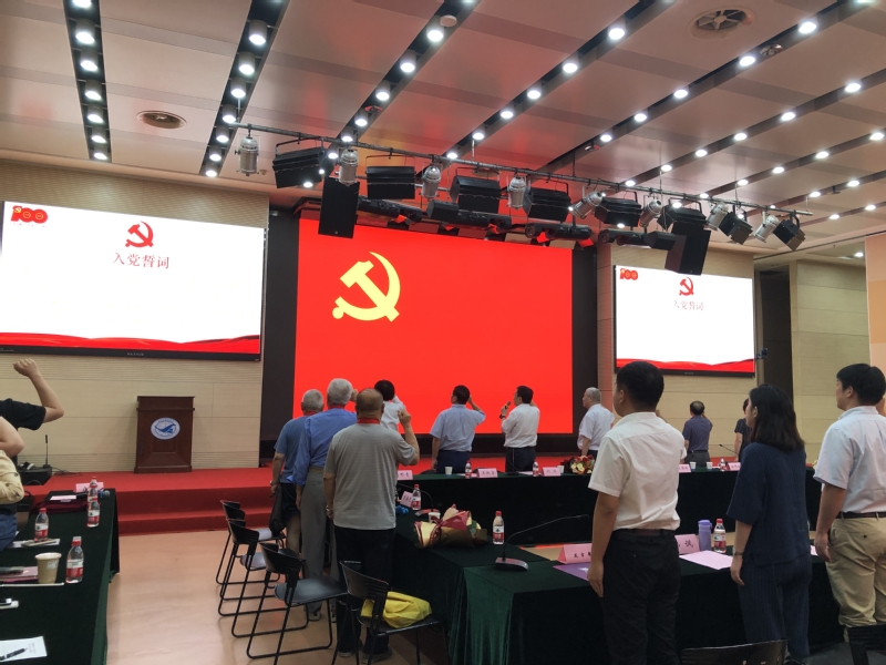 在鲜红的党旗下,在场党员共同重温入党誓词,铿锵有力的宣誓声响彻报告厅。《国际歌》慷慨激昂的旋律响起,本次活动圆满落幕。