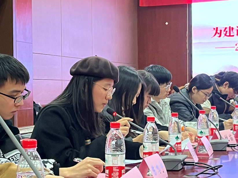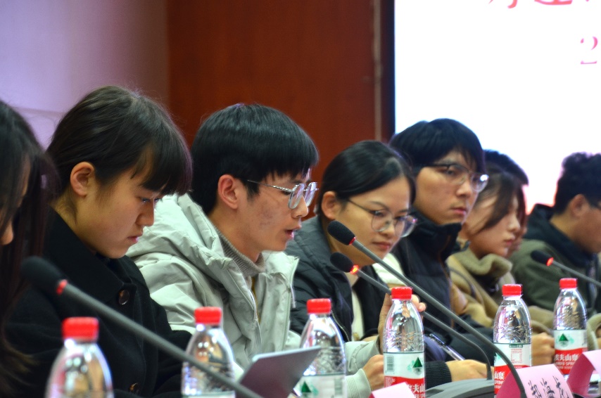 三位年级团总支代表,徐悦笛、符清妍、郭青蔚同学分别从年级工作的角度出发,提出学术科研、人才培养、对外交流等方面存在的同学们普遍关注的问题并给出针对性建议。
