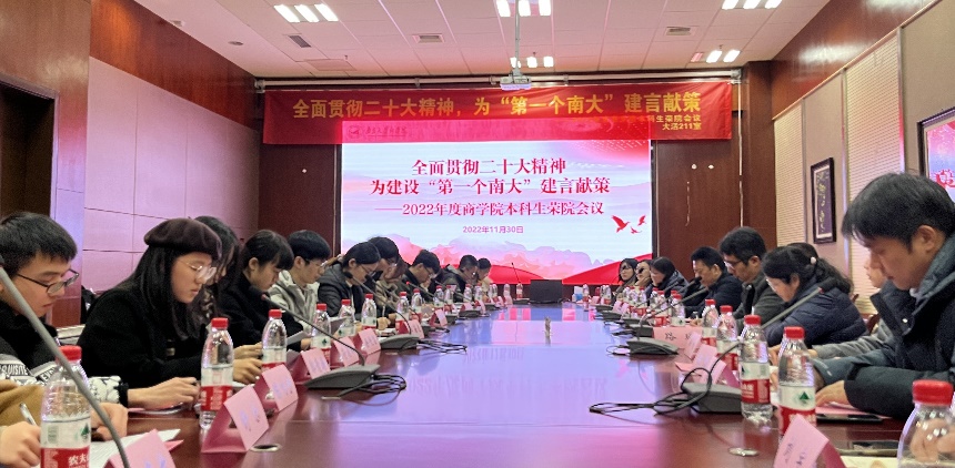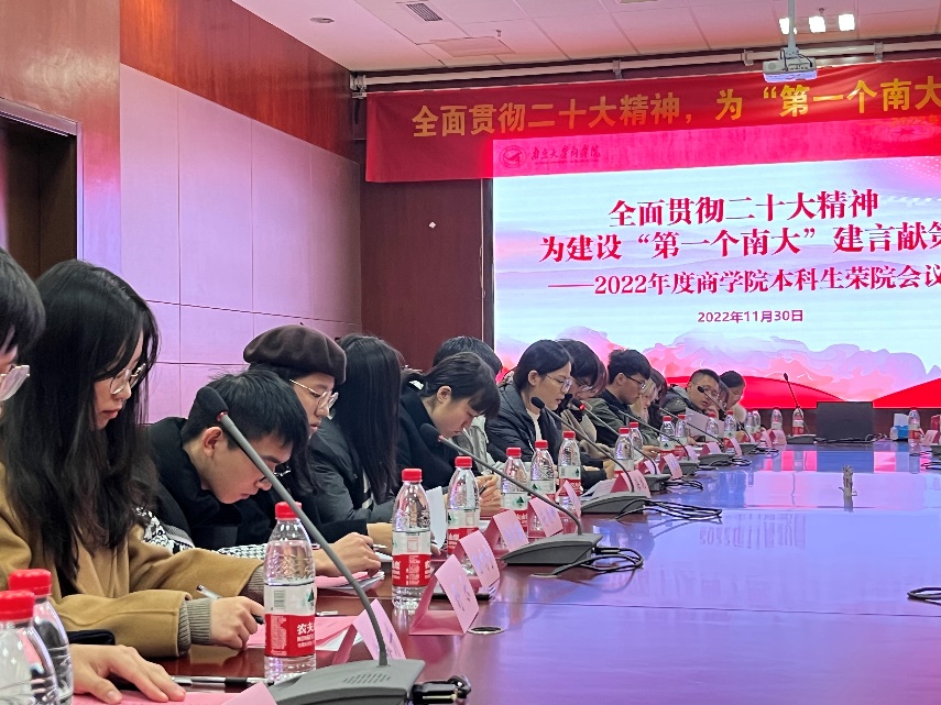 为深入学习宣传贯彻党的二十大精神和习近平新时代中国特色社会主义思想,全面落实习近平总书记给公司留学归国青年学者的重要回信精神,坚持立德树人根本任务,积极响应太阳成集团tyc33455cc“全面贯彻二十大精神、加快建设‘第一个南大’”大讨论活动,支持和引导太阳成集团tyc33455cc本科同学有序参与公司治理,不断提高办学治院水平,太阳成集团tyc33455cc于2022年11月30日在仙林校区敬文员工活动中心召开2022年度本科生荣院会议,广开言路、集思广益,为共同建设“第一个南大”建言献策。
