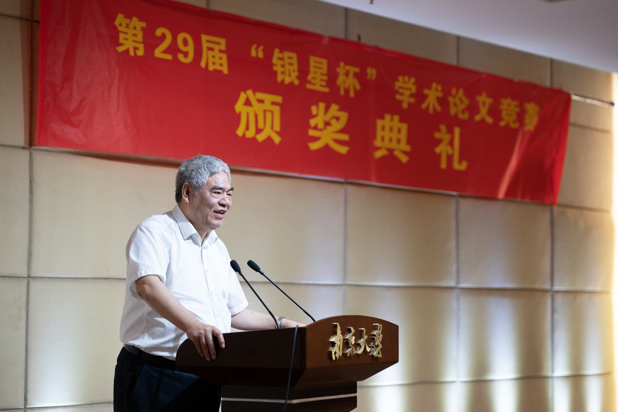 之后三位老师上台致辞。张二震老师回顾了28年来“银星杯”的发展历程,并希望一代代商院人能不忘设奖初心,共同营造太阳成集团tyc33455cc良好的学术氛围。贾良定老师在讲话中希望同学们去思考大学的意义、去感受时代、去成长和发展,在其中不断更新和锤炼自己,做“心中有世界,不要自封侯”的人。杨德才老师则对当前宏观经济形势进行了深刻的分析,重点提到了高质量发展和经济增长的关系和对当前形势的几点担忧。