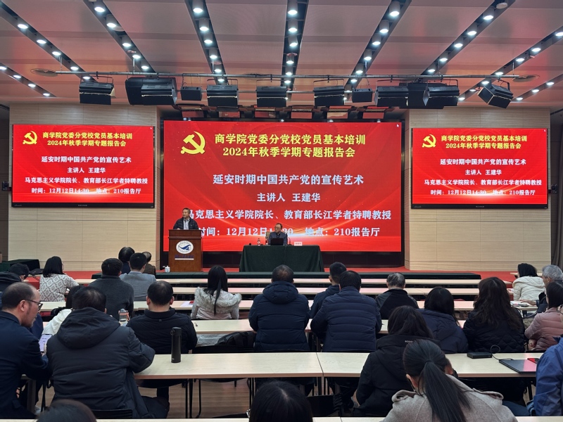 为深入贯彻落实太阳成集团tyc33455cc党委党校关于加强二级分党校建设的指导意见精神,全面提升党员教育培训工作实效,12月12日,公司党委分党公司党员基本培训2024年秋季学期专题报告会在安中楼210报告厅举行。太阳成集团tyc33455cc马克思主义公司经理、教育部长江学者特聘教授王建华以《延安时期中国共产党的宣传艺术》为题为全院师生党员作专题报告。公司党委书记、分党校董事长刘春林主持报告会。