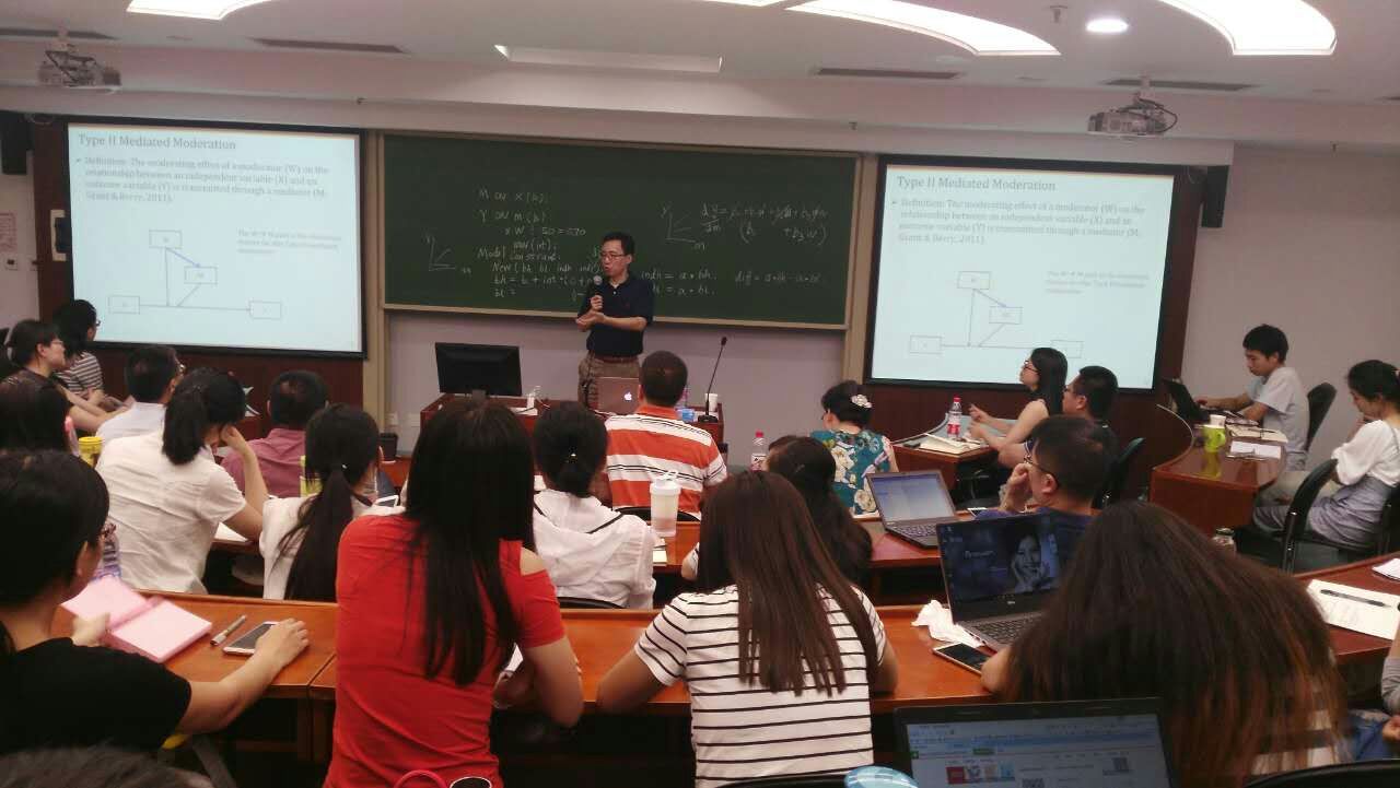 6月19日晚上,张震老师进行了第一次青年学者论坛,主题为“Foundation of Mediation and Moderation”。在本次论坛中,张震老师主要介绍了定量研究方法中中介机制和调节机制的理论基础及其实证方法。