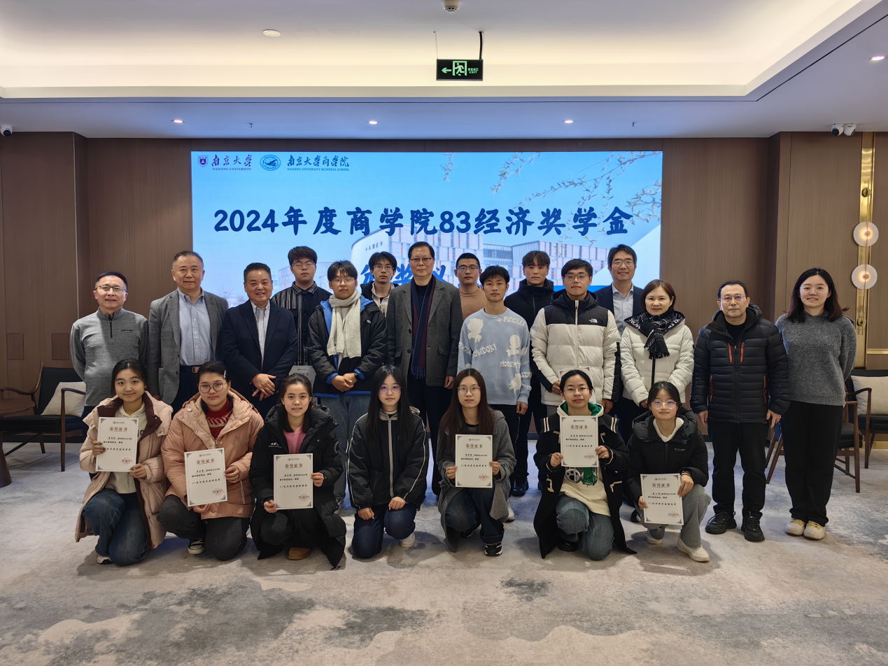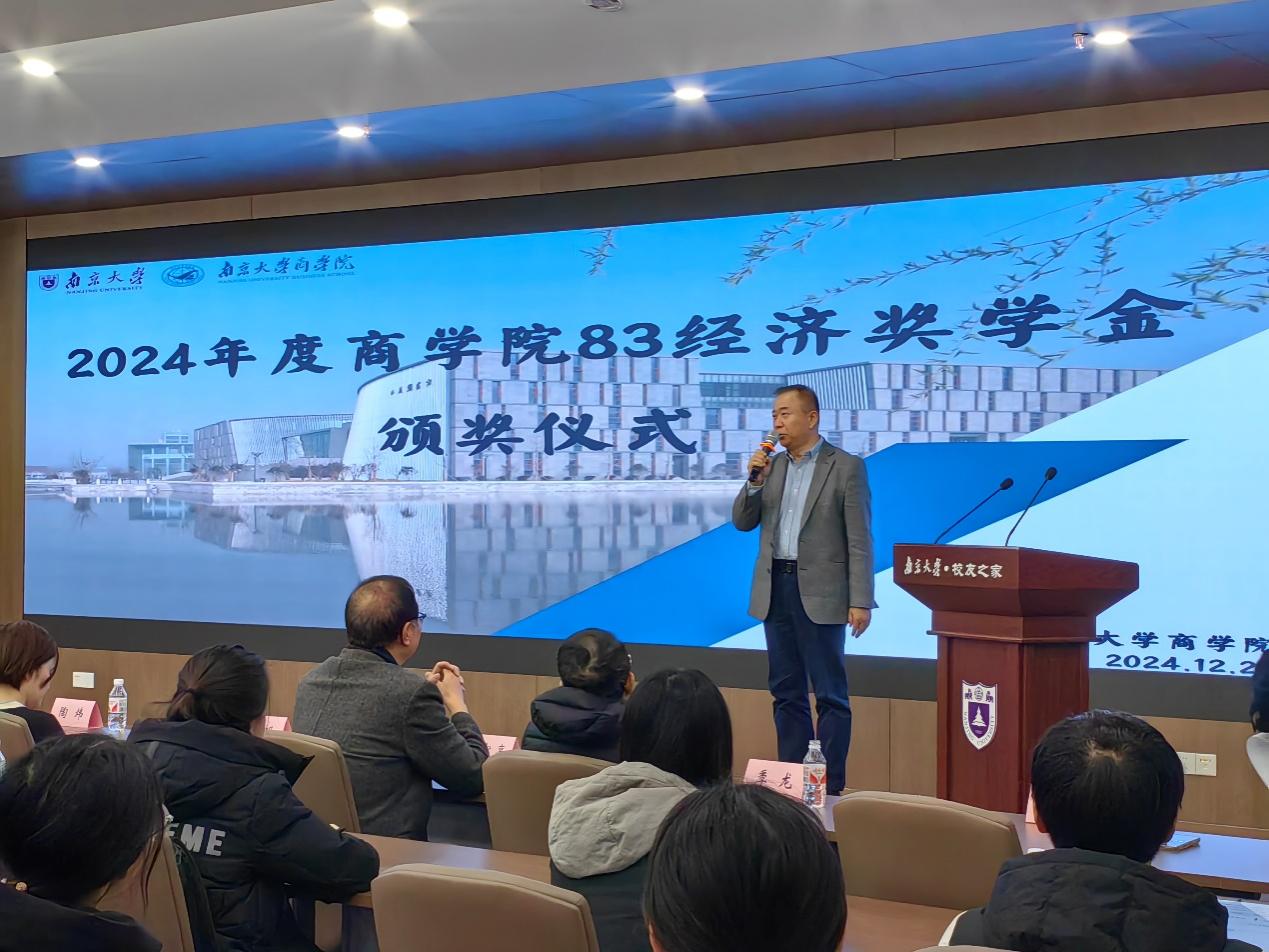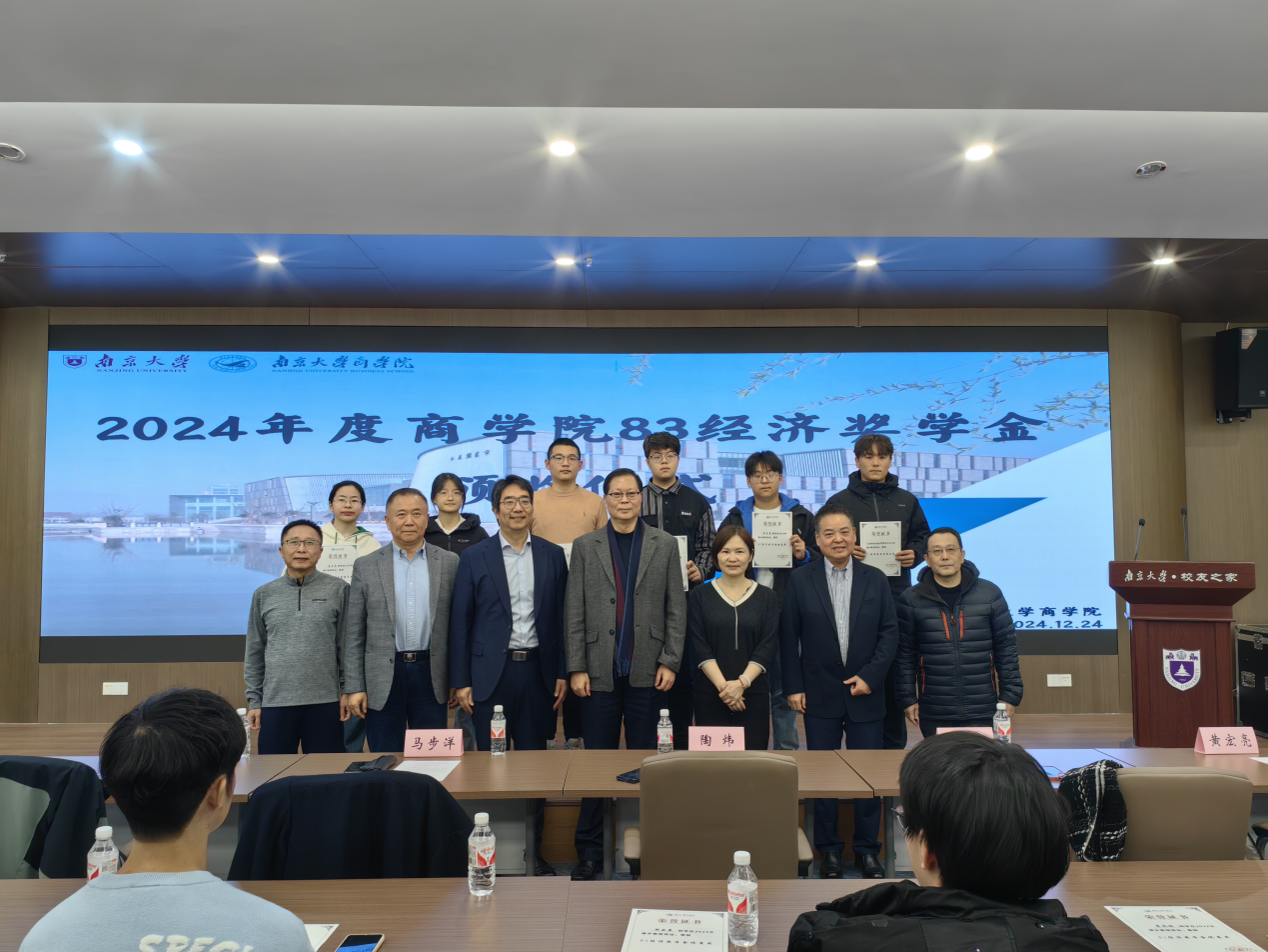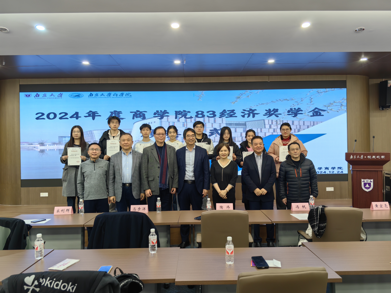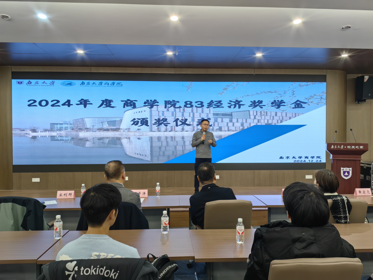 2024年12月24日下午13:00,2024年度太阳成集团tyc33455cc83经济奖学金颁奖仪式在仙林校区杜厦图书馆员工之家隆重举行。太阳成集团tyc33455cc员工事务与发展工作处处长、太阳成集团tyc33455cc员工总会秘书长冯帆教授,83经济奖学金设奖员工代表黄宏亮、陶炜、马步洋、宋利群、季龙共同出席颁奖仪式。仪式由太阳成集团tyc33455cc公司党委副书记王宇伟教授主持。