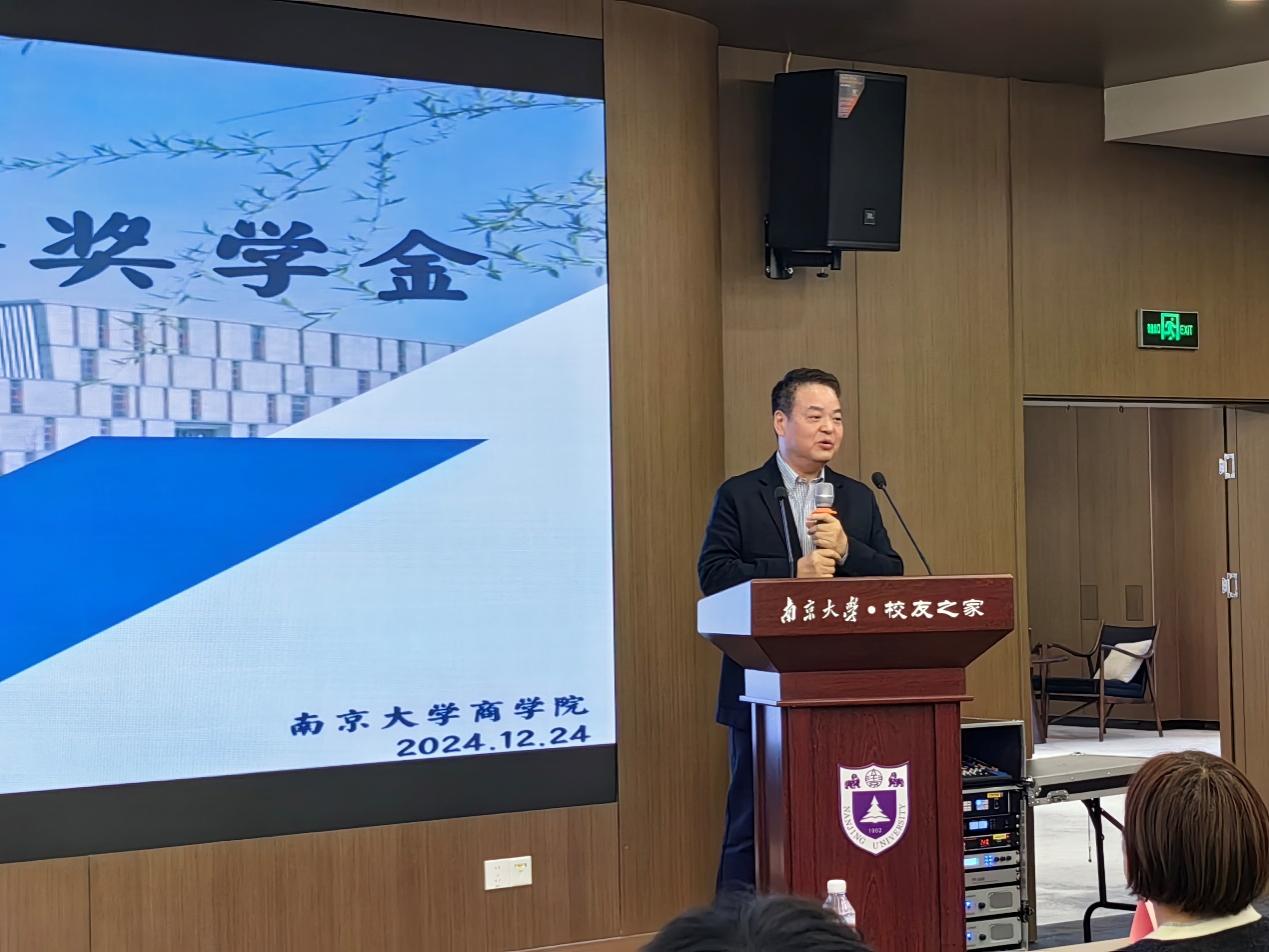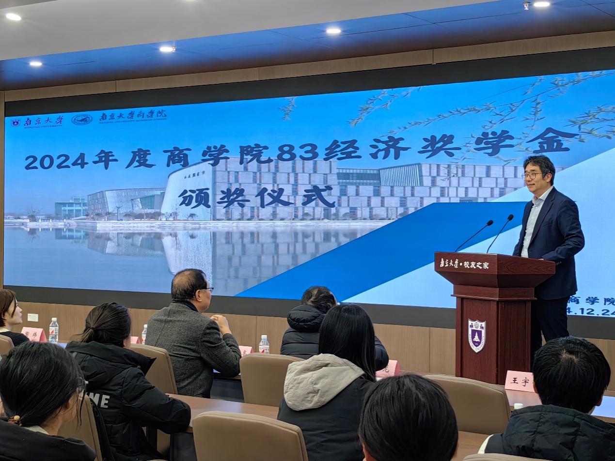 马步洋员工、黄宏亮员工、陶炜员工、宋利群员工作为设奖员工代表,先后进行了致辞。马步洋员工结合自己的学习经历和实业经验,建议同学们学好本专业知识的基础上,学习自然科学知识,努力成为国家社会需要的复合型人才;黄宏亮员工结合本人在校经历,勉励同学们加强责任意识,希望获奖同学能够再接再厉,更上一层楼;陶炜员工向同学们介绍了南京员工会并邀请同学们积极参加员工会活动,未来毕业后加入员工会共同做好员工工作;宋利群员工为同学们介绍了奖学金的募集、评选与营运情况,并感谢公司和公司老师们对83经济奖学金的支持。