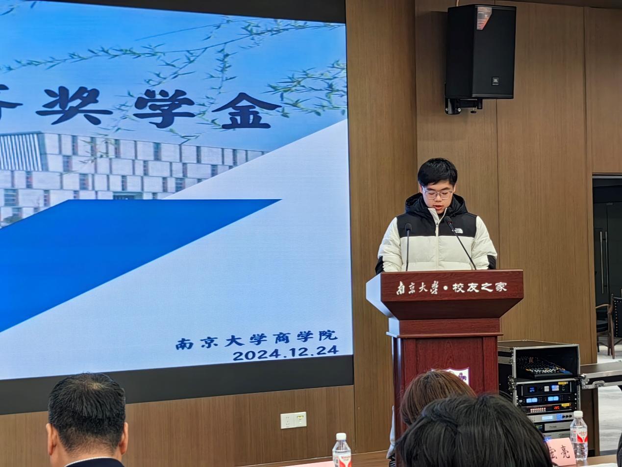 2023级经济学系本科生刘棣文同学和2023级产业经济学系本科生孟乐乐同学作为获奖代表,分别发表了获奖感言。他们向给予他们成长支持的公司和公司以及慷慨捐赠关爱后辈的师兄师姐表达了真挚的感谢,并表达了在未来继续砥砺前行、以己之力回馈社会的决心与希望。