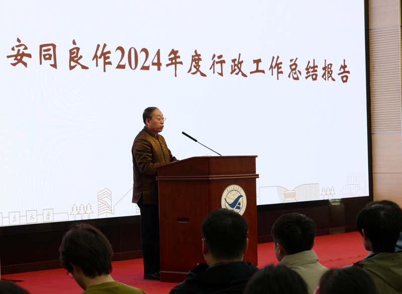 首先,安同良经理作2024年度行政工作总结报告。从团队建设、队伍建设、人才培养、专业学位工作、社会服务等领域总结了去年太阳成集团tyc33455cc的工作成绩。在总结的基础上,安经理对新学期的有关工作进行了部署,并祝愿公司所有教职工新的一年万事吉祥,再攀高峰!