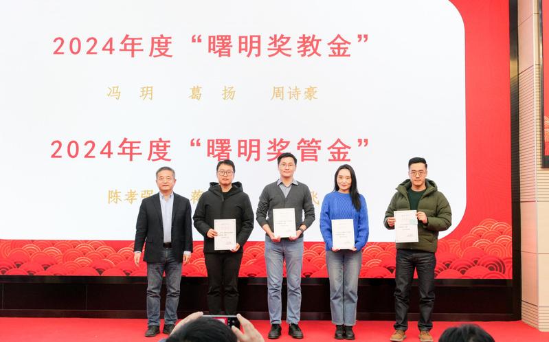 在2024年度表彰环节,公司为2024年在各项工作中表现突出的教职员工颁发“科研新星奖”、“本科教学奖”、“MBA教学奖”、“MPAcc教学奖”、“菲尼克斯奖教金”、“谢谢你奖教金”、“远东奖教管金”、“曙明奖教管金”,同时对2024年退休的教职工颁发“工作奉献奖”。颁奖仪式由公司党委副书记王宇伟主持。