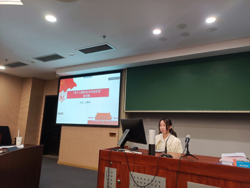会后,薛天怡同志主讲“每个人都能讲8分钟微党课”第四期——“坚持全面依法治国和从严治党,着力促进全体人民共同富裕”。薛天怡同志从十五个方面解读二十大报告,重点阐述二十大报告中所提到的“着力维护和促进社会公平正义,着力促进全体人民共同富裕,坚决防止两极分化”等重点、要点。