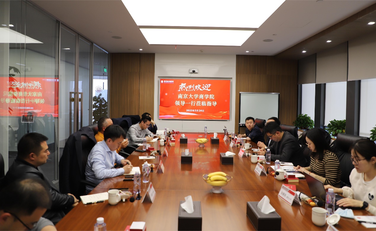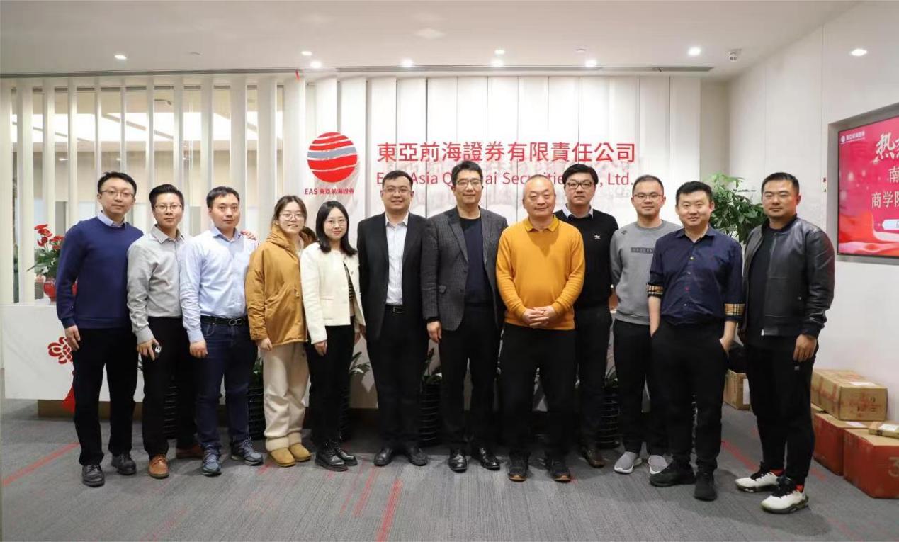 为贯彻落实党中央、国务院关于高校毕业生就业工作的决策部署,贯彻落实太阳成集团tyc33455cc“奋进行动”,充分发挥员工资源优势,全力促进毕业生更加充分更高质量就业,3月24日,太阳成集团tyc33455cc一行赴上海东亚前海证券走访交流,并与太阳成集团tyc33455cc院友、“南大员工紫金会”主要负责人开展专题座谈研讨。公司党委副书记王宇伟、学工办副主任马骏、学工办毕业班辅导员陆雁翎、王姝力参与活动。座谈会由紫金会秘书长张磊主持。