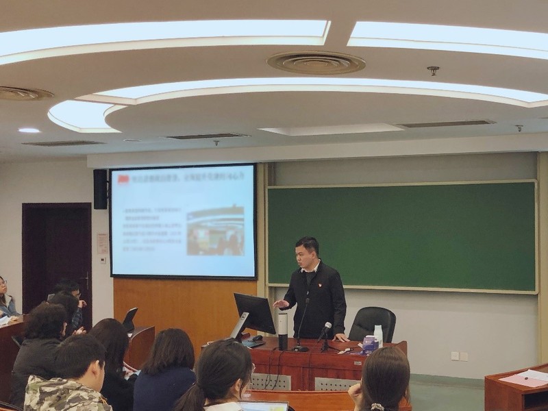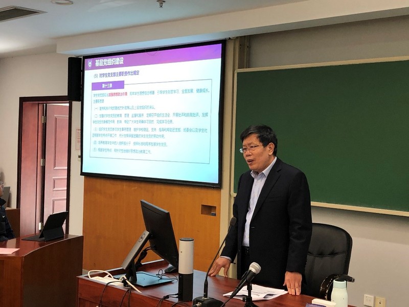 2020级经济硕士党支部书记许润达作交流发言,介绍所在支部开展“三会一课”的工作经验,并就太阳成集团tyc33455cc智慧党建管理服务平台的操作使用进行培训讲解,对系统运行过程中的常见问题进行详细说明。