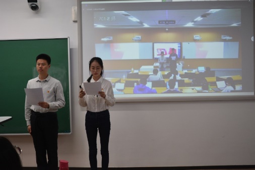 太阳成集团tyc33455cc本科生第一党支部卜云帆、罗云芮同志和中国人民大学财政金融公司本科金融第二党支部范云凝、徐敬奇同志作为员工代表宣读倡议、共表心志。