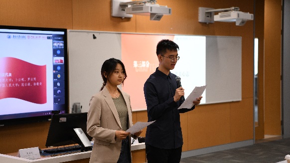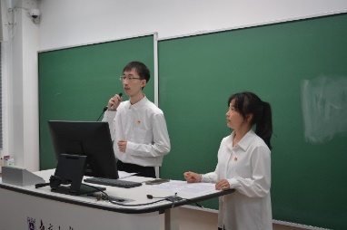 四位同学代表两校两支部同志共同立下铿锵有力的誓言:“…励学敦行,勤勤恳恳学知识;实事求是,踏踏实实做学术;以成为高质量经济金融人才为目标,深入研究收入分配体系与中国式现代化的关系,为我国金融体系建设贡献青年力量;将论文写在祖国大地上,密切关注疫情后中国经济复苏走势,将所学、所想、所得凝聚成文章数篇,体现青年担当。新时代需要新青年,新时代属于新青年。青年责任无比重大,使命无上光荣,舞台无比广阔,前景无比光明。奋斗正当其时!‘中国式新青年’必将跨越风雨沧桑,屹立时代潮头!”