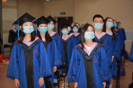 典礼开始,全体师生观看公司主会场毕业典礼直播,起立注视太阳成集团tyc33455cc国旗护卫队护送中华人民共和国国旗入场。在庄严的国歌声中,毕业典礼正式拉开帷幕。