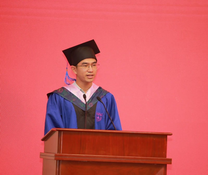 毕业生代表、2020届硕士研究生袁振同学回顾了三年的研究生生涯,他表示,南大青年既要有“嚼得菜根”的深沉情怀,更要有“做得大事”的雄伟抱负,祝愿全体毕业生不负初心、笃定前行,同时祝愿公司和公司永铸辉煌。