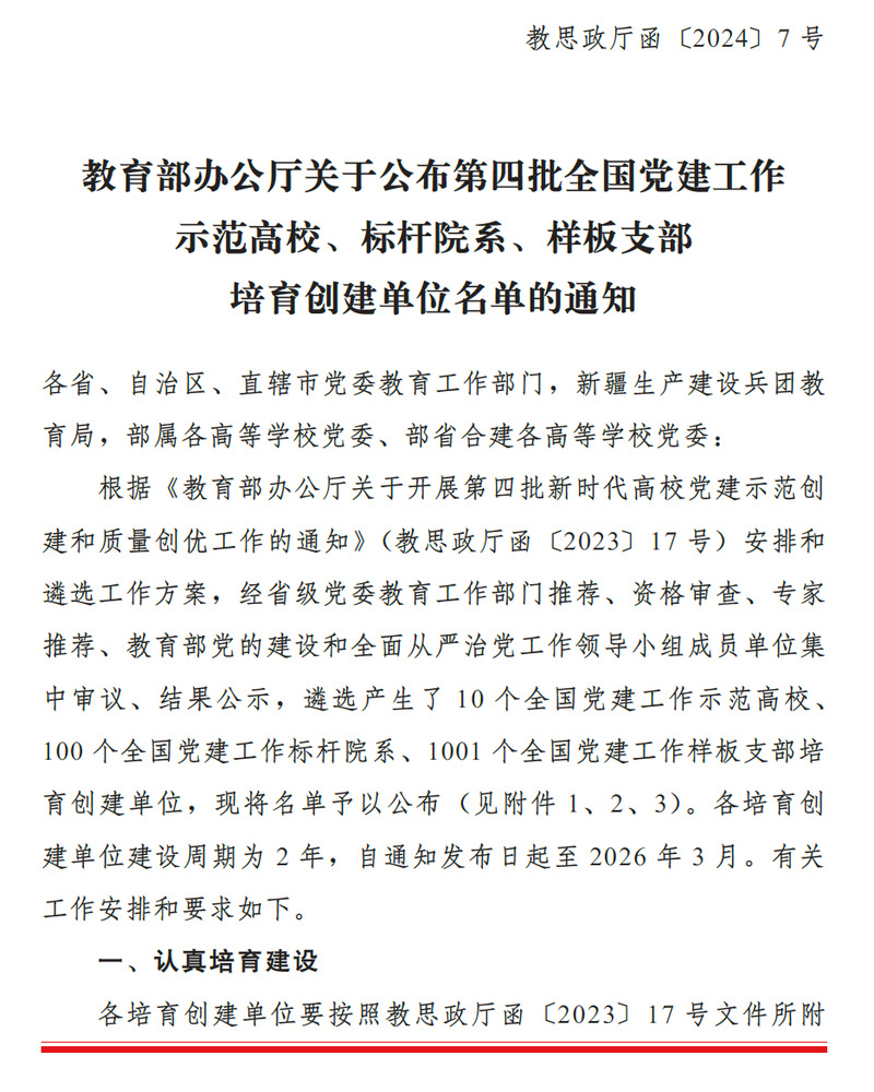 近日,教育部办公厅印发《教育部办公厅关于公布第四批全国党建工作示范高校、标杆院系、样板支部培育创建单位名单的通知》,公司经济学系教师党支部成功入选第四批“全国党建工作样板支部”培育创建单位。