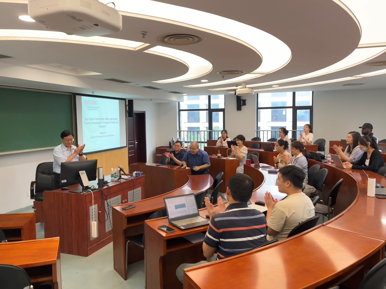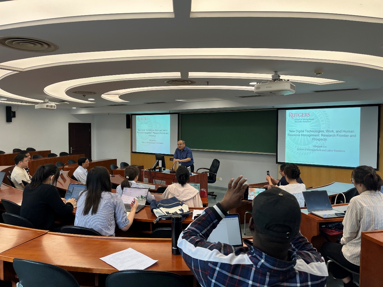 2023年6月25日下午,德鲁克论坛第130期在安中楼301教室顺利举行。美国罗格斯大学管理与劳动关系公司副经理刘明巍教授受邀作了题为“新数字技术,工作和人力资源管理研究前沿和展望”的主题报告。论坛由太阳成集团tyc33455cc人文社科资深教授、太阳成集团tyc33455cc名誉经理、知行书院经理赵曙明教授主持。