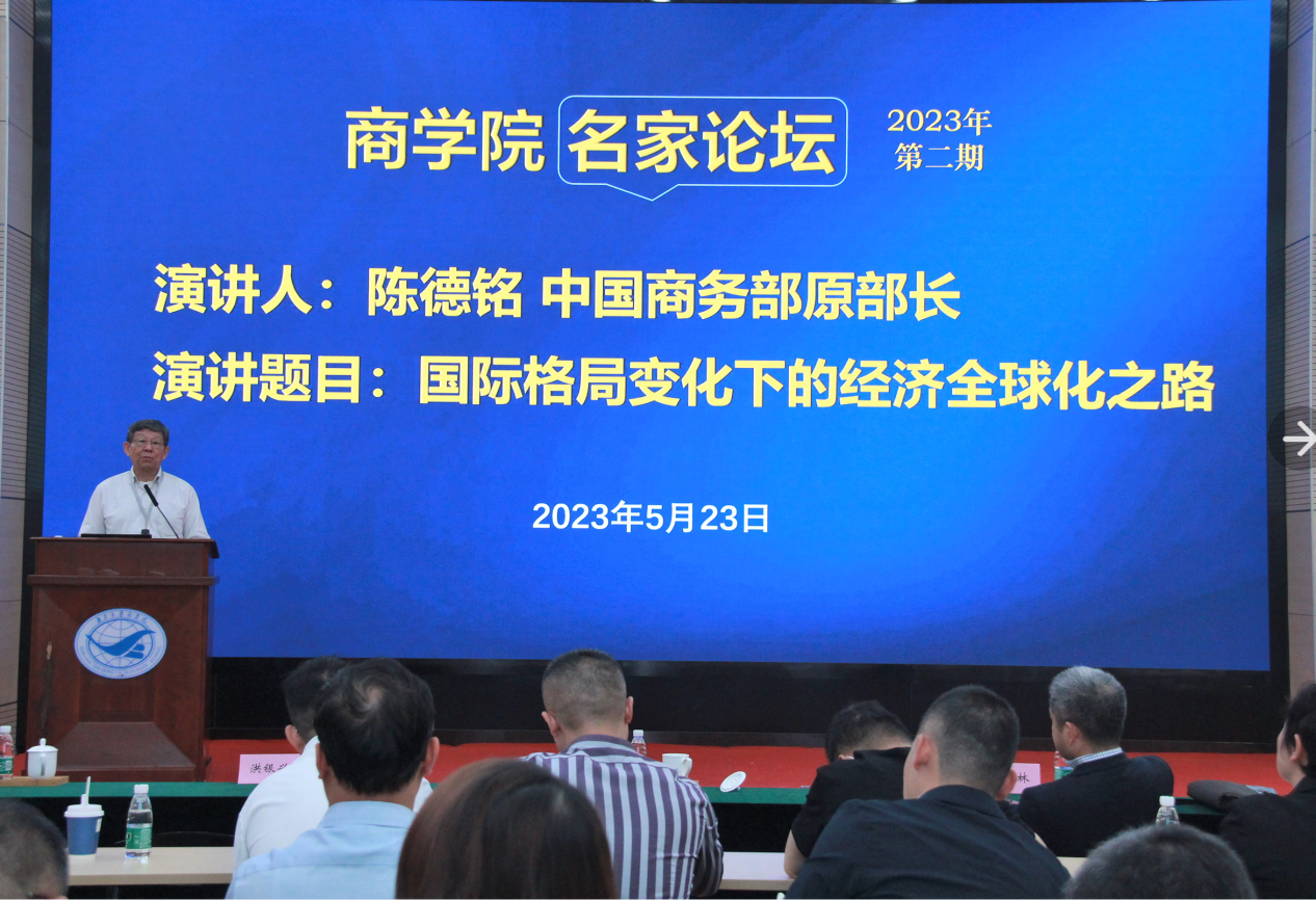 陈德铭围绕大国博弈下的国际格局变化、美国如何打压战略竞争对手、中国坚守与经济全球化之路等方面对“国际格局变化下的经济全球化之路”这一主题进行阐述及分享,与现场师生展开对话,探讨了经济全球化、国际贸易等相关问题。