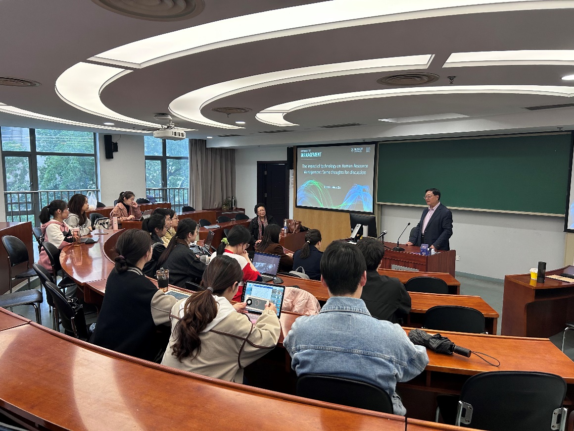 首先,赵曙明教授对朱久华教授本次来院报告与分享“技术对人力资源管理的影响”主题研究表示热烈欢迎与衷心感谢。