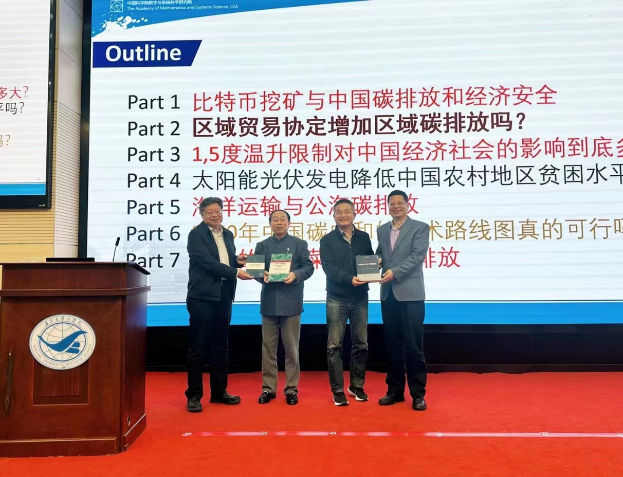 讲座结束后,汪寿阳和洪永淼向刘春林和安同良赠书,并合影留念。