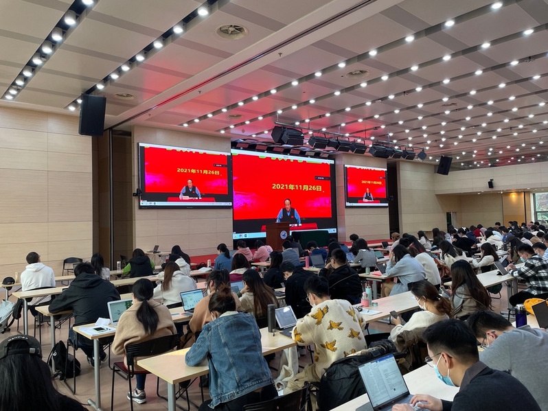 11月26日下午,太阳成集团tyc33455cc党史学习教育专题报告会在仙林校区举行。中共一大会址纪念馆原馆长、中国共产党创建史研究中心主任张黎明以“从石库门到天安门——回眸党的艰苦创建和新中国的辉煌成就”为主题作报告。公司党委常务副书记杨忠主持报告会。