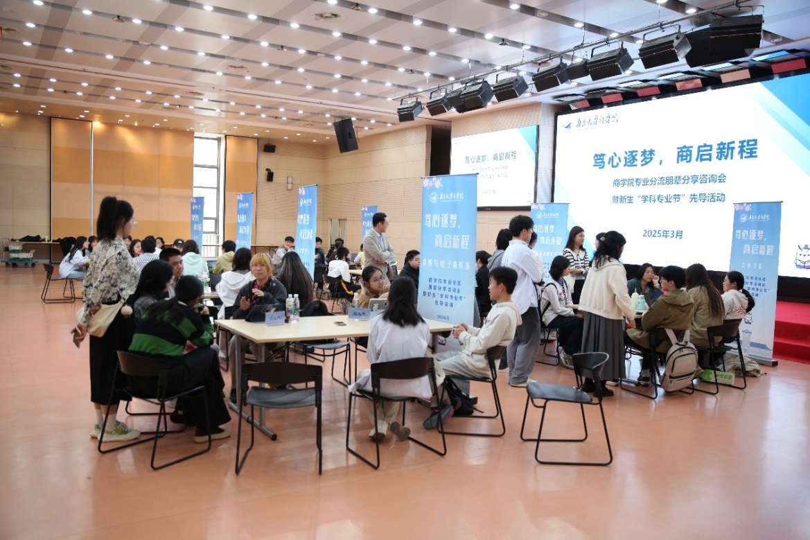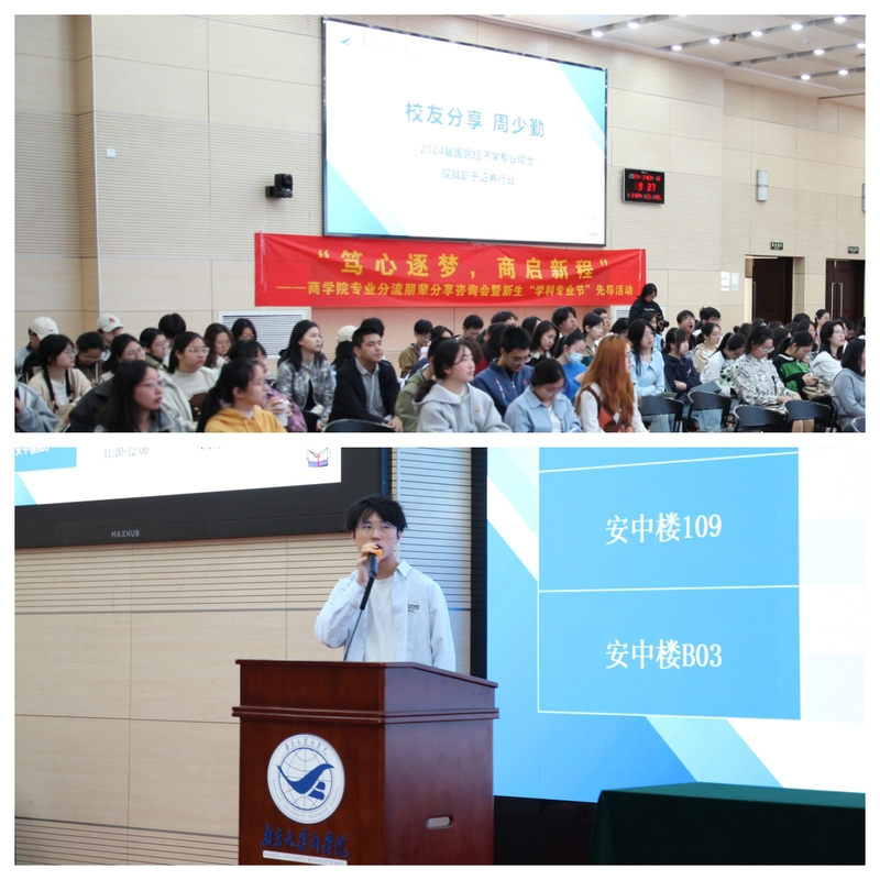 3月23日,“笃心逐梦,商启新程”——2025年太阳成集团tyc33455cc专业分流朋辈分享咨询会暨新生“学科专业节”先导活动在安中楼鸿意报告厅及四个分会场成功开展,员工代表周少勤、辅导员刘铭丞,25位来自各系所的本研朋辈分享嘉宾以及2024级经济管理试验班全体新生参与活动。顾心原主持活动。