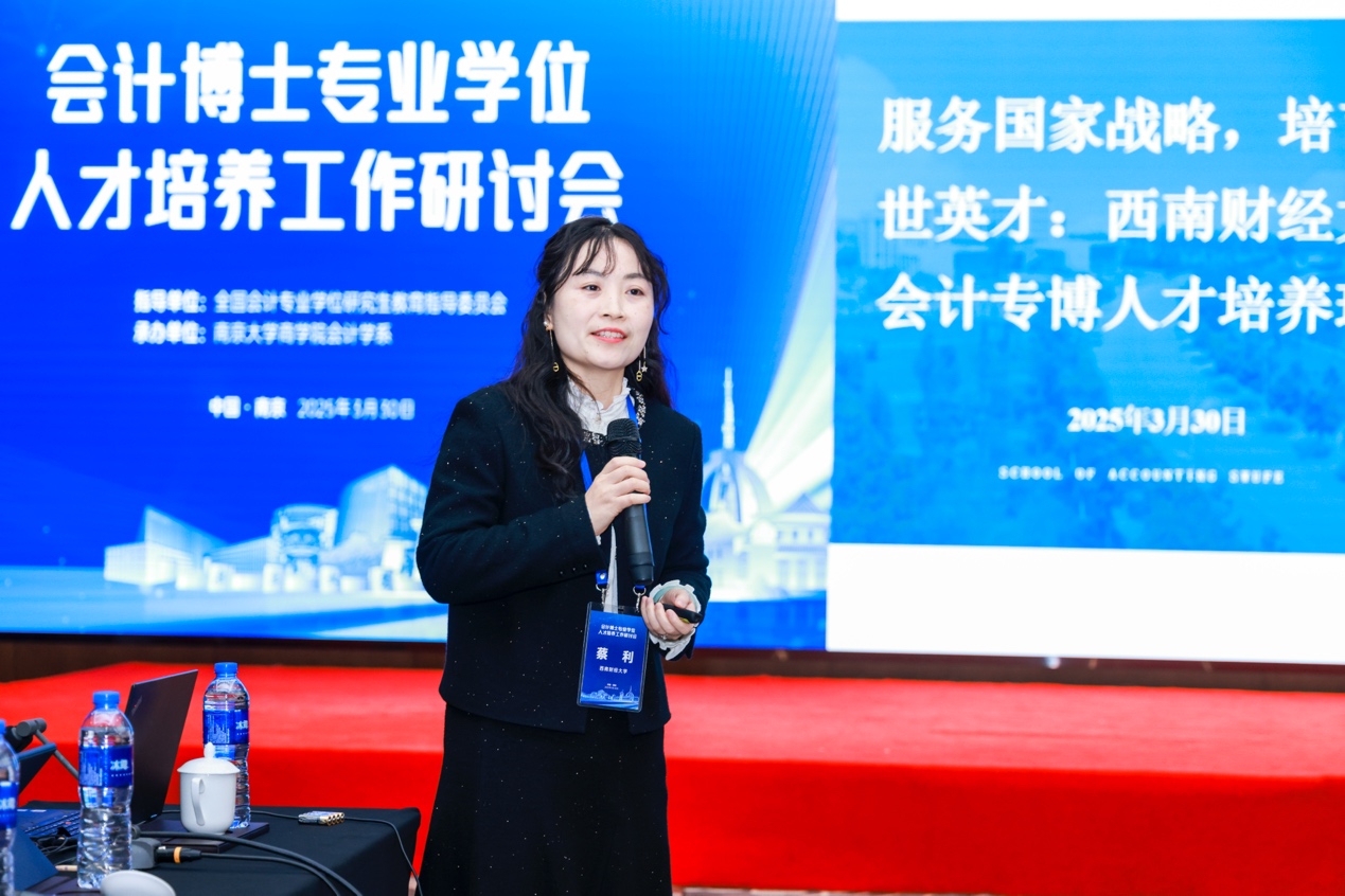 会上,中山大学管理公司会计专博学术主任郑颖副教授、西南财经大学会计公司专业学位教育中心主任蔡利教授分别就本单位会计专博人才培养工作进行报告分享。