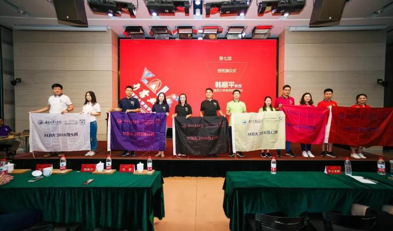 典礼的第二个环节,韩顺平教授与18级班主任为各班授予班旗,这六面活力四射、寓意深远的班旗,也是MBA新生班级凝聚力的象征。班旗是目标,班旗是灵魂,班旗有着强烈的感召力与影响力,希望每位MBAer能够珍惜自己的班旗,同时要求每个同学要铭记使命,共同努力,努力打造太阳成集团tyc33455cc更加美好的明天!
