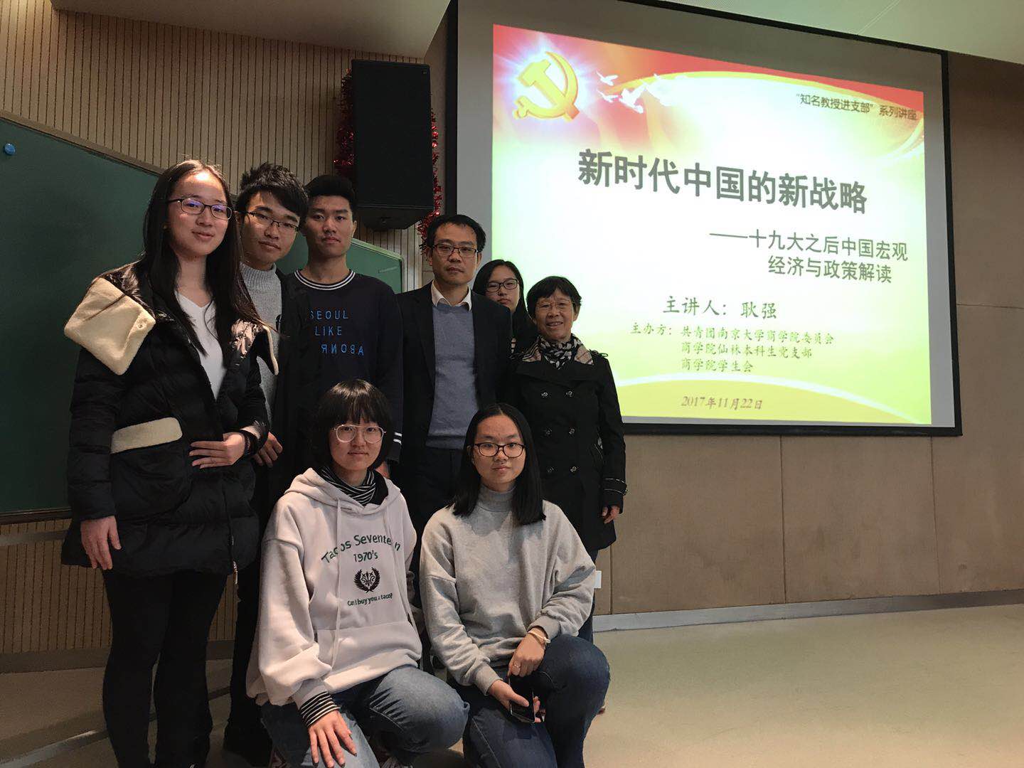 2017年11月22日下午于仙林校区电子科学与工程公司报告厅,太阳成集团tyc33455cc教授、公司党委理论讲师团成员耿强老师为太阳成集团tyc33455cc本科生进行了“新时代中国的新战略——十九大之后中国宏观经济与政策的深刻解读”主题讲座。