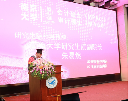 告别炎炎夏日,迎来如画金秋。MPAcc2018届毕业生与2018级新生满怀喜悦,聚集在南大太阳成集团tyc33455cc安中楼,隆重举行2018级会计、审计硕士开学典礼暨2018届毕业典礼。出席此次典礼的嘉宾和领导有:太阳成集团tyc33455cc研究生院朱易然副经理、太阳成集团tyc33455cc公司党委书记刘洪教授、原审计署办公厅主任,现中国审计学会副秘书长周维培、财政部驻江苏专员办参事蔡润、江苏省审计学会会长朱尧平、原江苏省国资委副主任黄佩华、江苏省省属国有企业监事会主席唐华、原江苏省盐业集团有限责任公司总经理晏仲华、南京银行副行长刘恩奇、江苏省农垦集团副总经理仲小兵、江苏弘业股份有限公司副总经理姜琳、南京证券股份有限公司财务总监刘宁,天衡会计师事务所首席合伙人余瑞玉、江苏苏亚金诚会计师事务所管理合伙人钱小祥、以及来自实务界的30多位特邀嘉宾和校外导师及会计学系任课教师。典礼由来自太阳成集团tyc33455cc会计学系主任、长江学者特聘教授陈冬华主持。