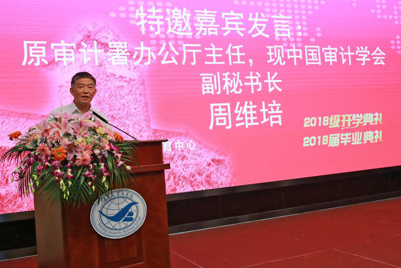 接着,原审计署办公厅主任,现中国审计学会副秘书长周维培教授进行了精彩的发言。朱教授引用了世界哲学大会主题“学以成人”四字表达了对大家的期望。一方面,他希望大家能积极向他人学习,另一方面,要树立健全人格,往更高的人生目标不断前进。同时,周教授认为大家需要重点关注国家审计、世界审计的发展,与时俱进。