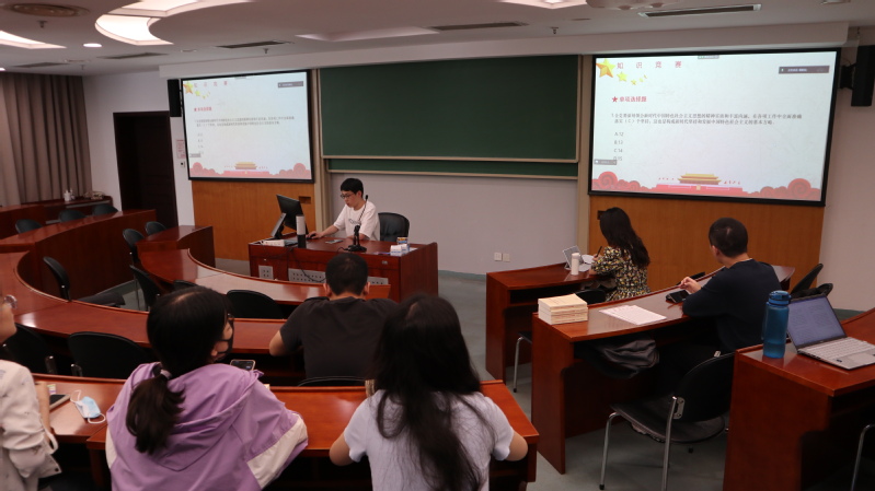 在一系列的学习和分享后,支部开展知识竞赛,带领支部成员全面回顾所学。竞赛题目结合习近平新时代中国特色社会主义思想和党史国史,吸引支部同志踊跃发言,展现对习近平新时代中国特色社会主义思想主题教育的深刻理解与感悟。