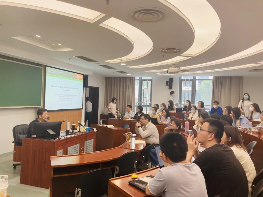 夏军教授向大家分享了他最新的研究内容“Pandemic Attributes and Location Avoidance of Firm Acquisitions”,这项研究从威胁规避角度出发,开发了外部威胁的新维度,以检验大流行特征对一国境内企业投资地点选择的影响。文章认为,像Covid-19这样的大流行在一个地区的普遍性、波动性和节律性是其特征,这些特征对企业收购活动的地点选择产生负面影响。在夏老师的精彩分享后,在座师生对这项研究表现了高度关注和兴趣,纷纷提出问题与夏老师展开了热烈的探讨。