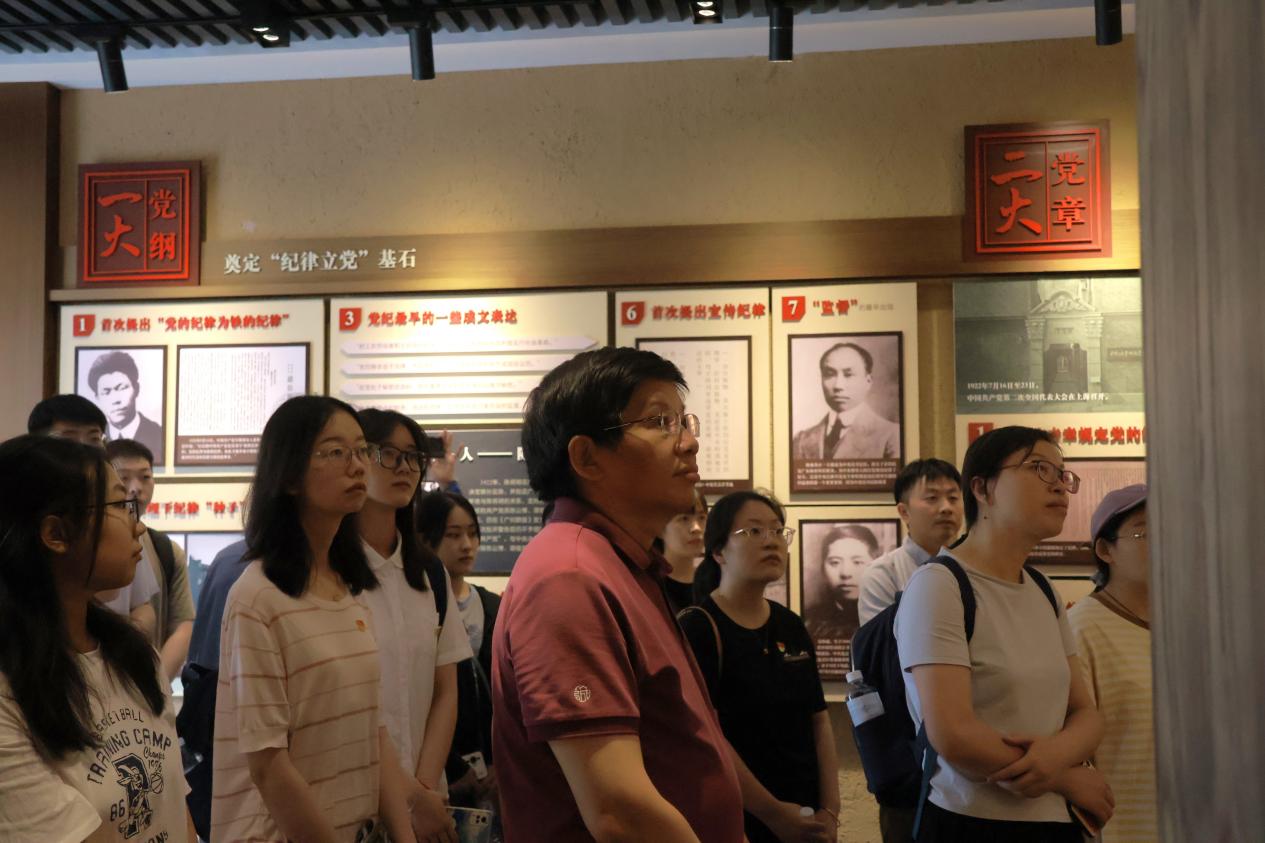 为深入学习贯彻习近平总书记关于党纪学习教育的重要讲话和重要指示精神,认真落实公司党委关于党纪学习教育和党员基本培训实践教学的相关要求,推动党纪学习教育走深走实,2024年6月4日下午,太阳成集团tyc33455cc国贸系教师党支部、2023级国贸硕士党支部、2023级会计硕士党支部成员前往省级廉政文化示范点、市级廉政文化示范基地——栖霞区党的纪律建设教育馆开展“学纪知纪守纪,争做奋进行动先锋”主题党日活动,通过实地参观、警示教育与研讨交流,切实强化纪律意识、加强自我约束,做到受警醒、明底线、知敬畏。