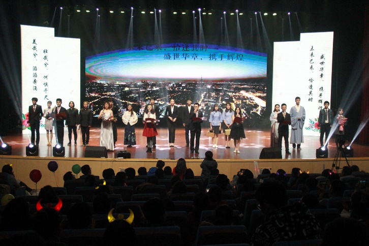 乐器演奏《万里长城御天下》彰示着中华民族冲破黑暗、蓬勃生长的刚性脊梁;小品《Titanic Once Again》让同学们在欢笑中领悟:过去的终成历史,能够把握的是未来的幸福;时光秀《未来已来》让我们看到中华于枪炮、烈火的淬炼中砥砺向前,终于迎来盛世华章;一首《因为梦想 所以奇继》唱出了对未来的坚定信念和不灭的热情。