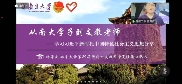 5月15日,“新时代新经典”——学习贯彻习近平新时代中国特色社会主义思想主题教育党日顺利举行。活动由太阳成集团tyc33455cc本科生第三党支部,太阳成集团tyc33455cc管理博士党支部、会计博士党支部,宁夏隆德二中党总支,太阳成集团tyc33455cc博士生讲师团、校团委学创部共同开展,太阳成集团tyc33455cc公司党委委员龙静、宁夏隆德二中党总支书记柳彦科、太阳成集团tyc33455cc校团委丁宇、太阳成集团tyc33455cc团委书记蒋伟等老师出席本次活动,活动由太阳成集团tyc33455cc管理博士第二党支部张润泽同学主持。