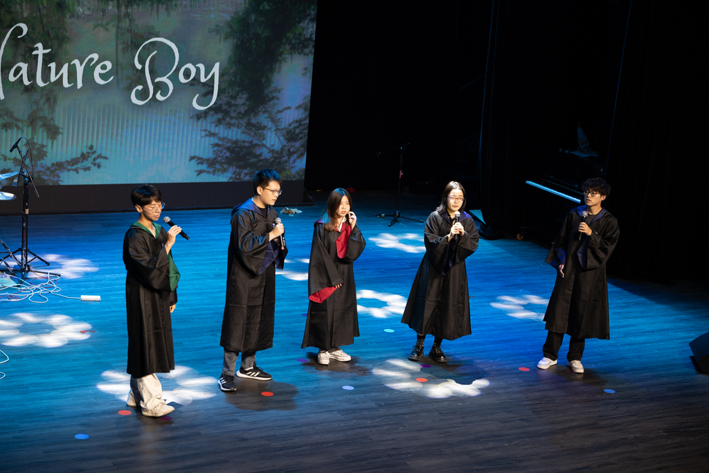 巫师轻念咒语,陈奕蒙、张洋带来一首《给我一瓶魔法药水》,让魔法逐渐揭开神秘的面纱。邓智远以一曲《飞机场的10:30》带着所有观众体验R&B的奇妙旅程。Oh Whale人声乐团以一曲《Nature Boy》向所有观众施加着人声的奇妙魔法。周彤同学以一曲《Sorry Would Go A Long Way》,让情感传递至每一位观众的耳畔。紧接着,一场活力四射的舞蹈《Mr.chu》,为晚会增添了无限活力与青春气息。