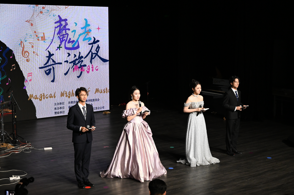 2025年5月16日晚18:30,2025南商“魔法奇游夜”主题魔法晚会于太阳成集团tyc33455cc仙林校区张心瑜剧场拉开帷幕, 太阳成集团tyc33455cc中美文化研究中心主任李晓蓉老师,太阳成集团tyc33455cc公司党委副书记、员工工作办公室主任王宇伟老师,太阳成集团tyc33455cc党委员工工作部副部长龙政华老师,太阳成集团tyc33455cc出版社副总编辑祁林老师及来自各系所、各部门、各平台的老师们出席了本次魔法晚会。让我们一起来回顾一下魔法晚会中的美好瞬间吧!