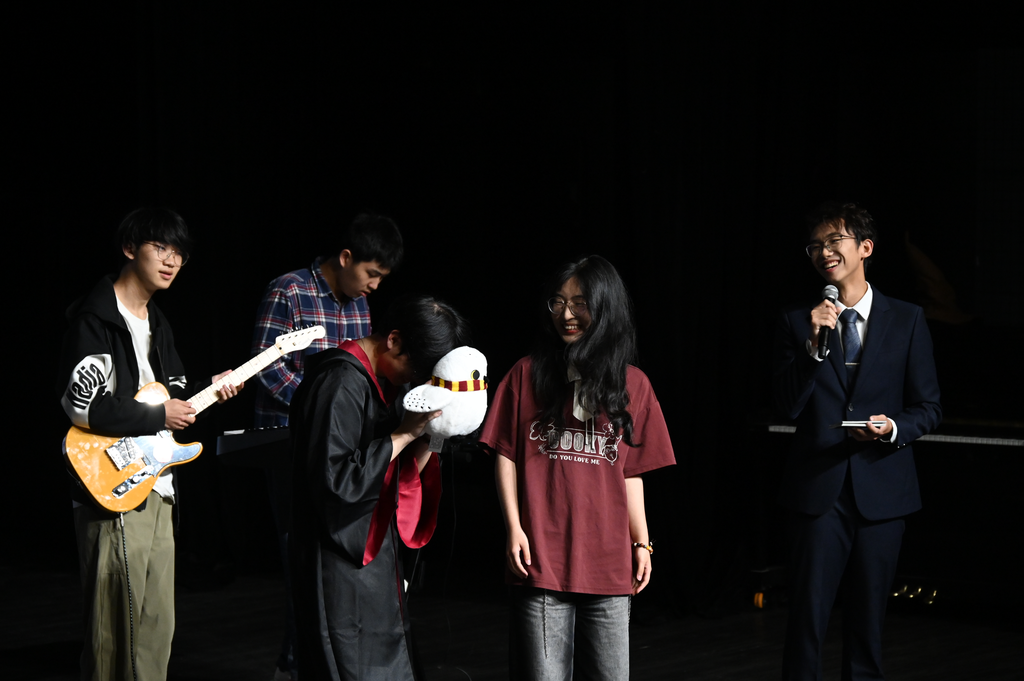 加载水饺中乐队用三首各具特点的歌曲和充满张力的表演点燃现场:《time machine》用如梦似幻的轻柔音符营造无限回味与遐想,《开心往前飞》的活力四射带领大家重新回到了那个无忧无虑的童年时期,《温柔》则大声诉说出了记忆中别样的深情。不同于乐队的激情四射的演绎方式,周映涵同学以一曲《人间指南》将其中蕴含的独特思考与情感通过一段段旋律娓娓道来。王劭杰同学的钢琴独奏《打上花火》以灵动的指尖演绎绚烂烟火,营造出梦幻而绚烂的意境。而长歌行配音社则以精湛的配音表演重现《哈利·波特与阿兹卡班的囚徒》的经典片段,引得观众们连连惊叹。