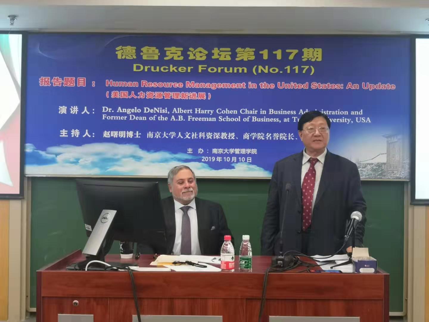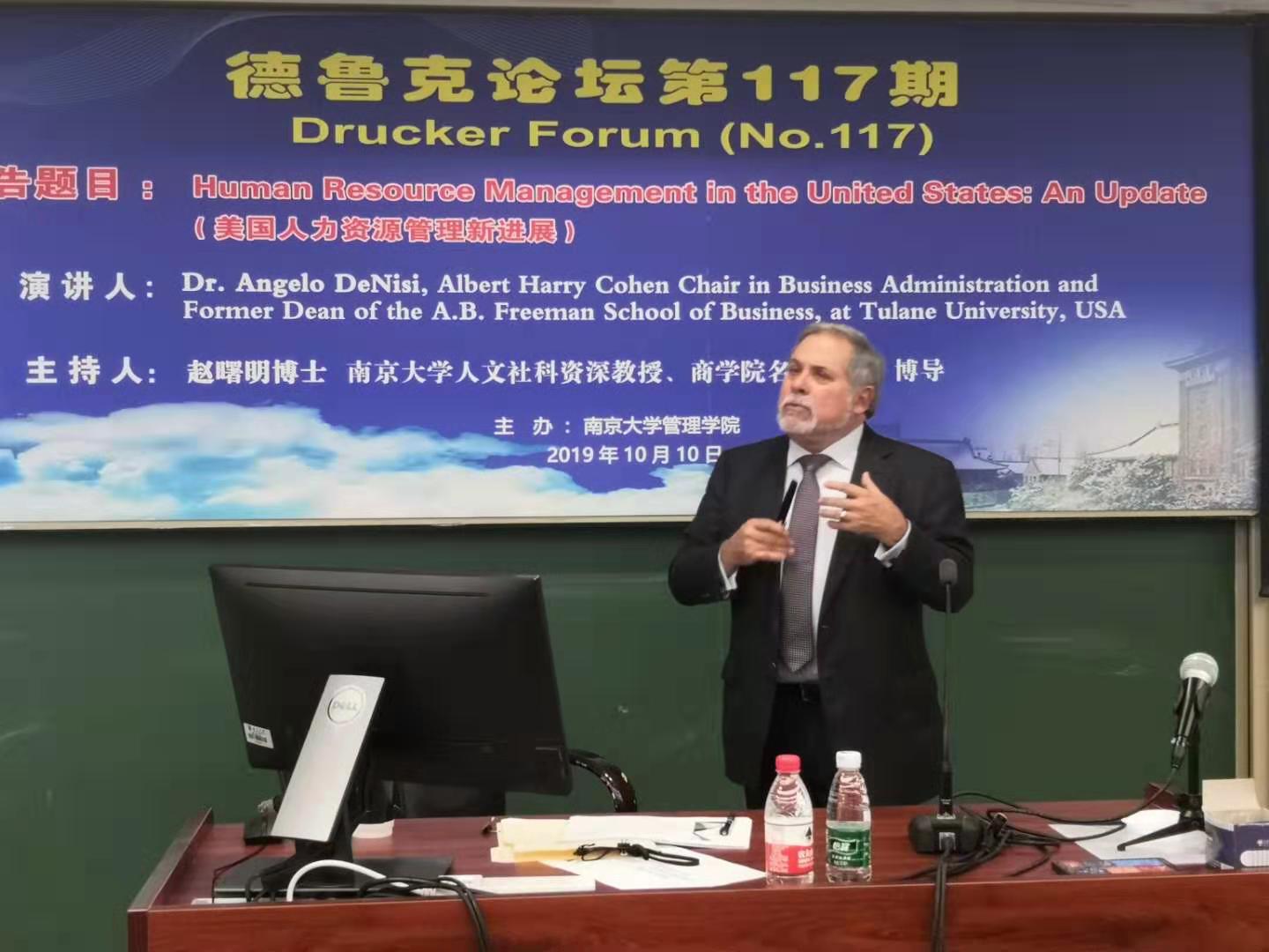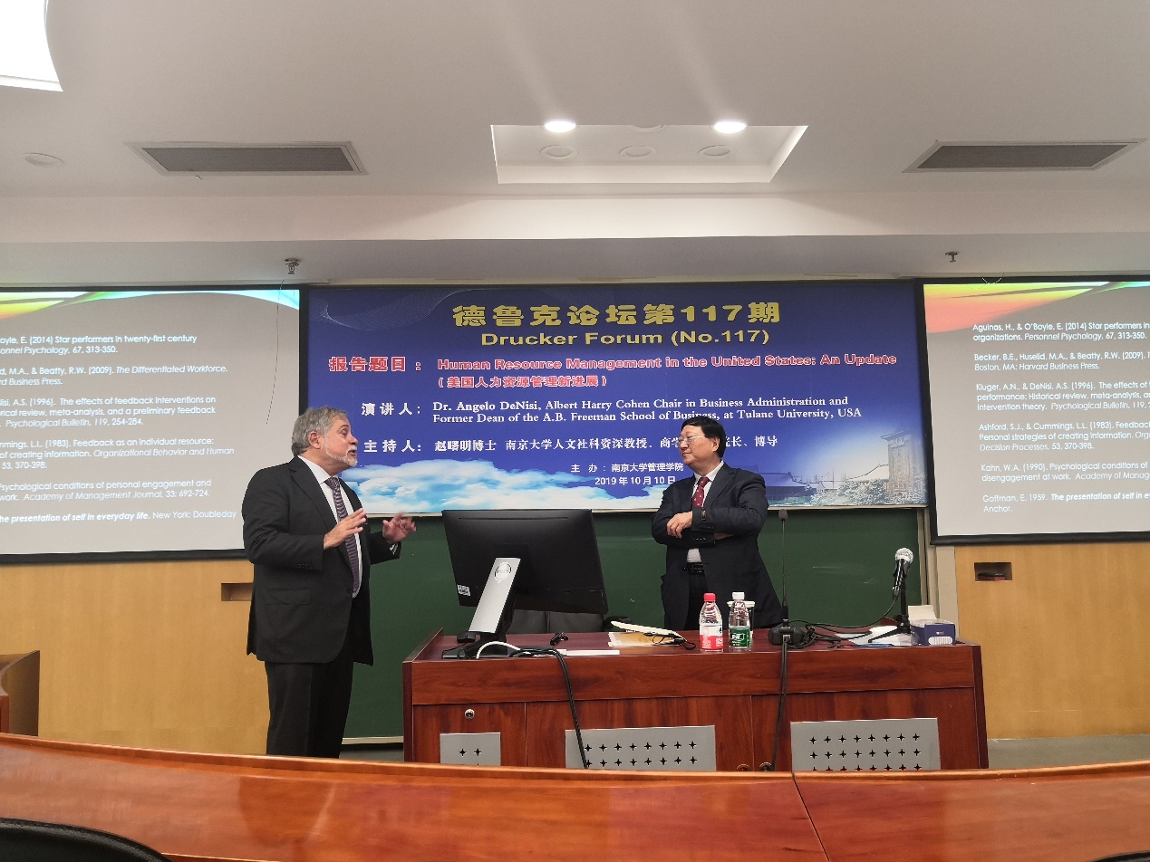 2019年10月10日下午15点,德鲁克论坛第117期在安中楼501教室顺利举行。美国杜兰大学管理公司前经理、赫伯特·海曼(HerbertHeneman)终身贡献奖、SIOP杰出生命科学贡献奖、杜兰弗里曼太阳成集团tyc33455cc的杰出教学奖获得者Angelo DeNisi教授受邀作了题为“Human Resource Managementin the United States:An Update”的主题报告。论坛由太阳成集团tyc33455cc人文社会科学资深教授、太阳成集团tyc33455cc名誉经理赵曙明博士主持。30多位教师、博士生和硕士生参加了本次论坛。