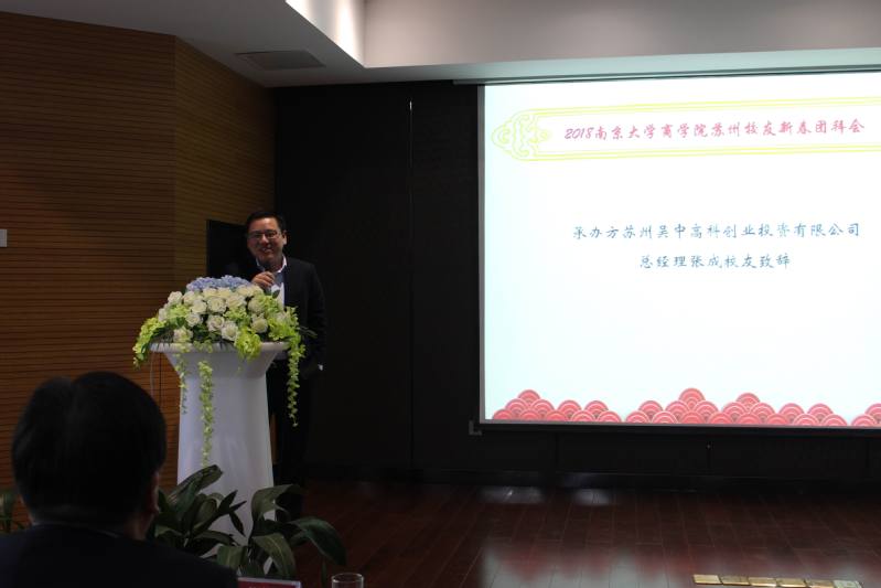 承办方苏州吴中高科创业投资有限公司总经理张成(98经济本)员工致辞