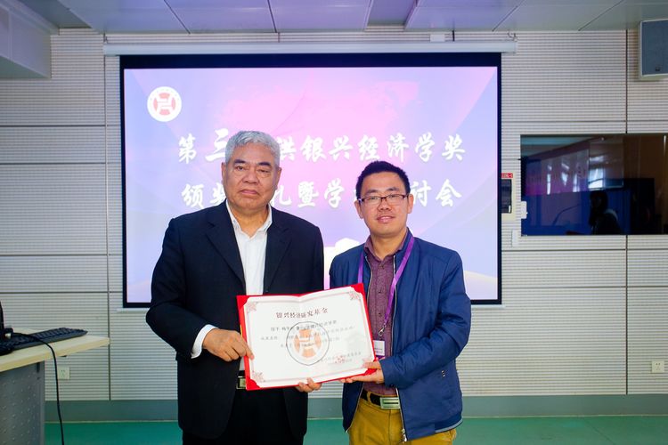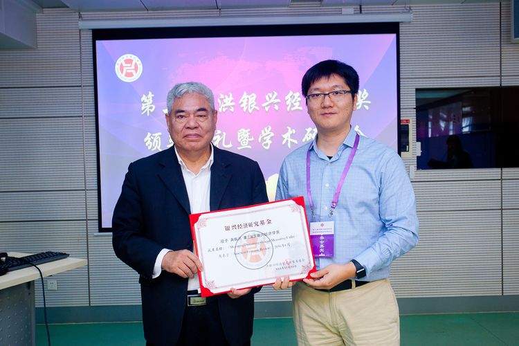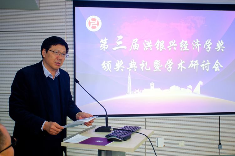 洪银兴教授为第三届洪银兴经济学奖获得者黄振兴博士颁奖