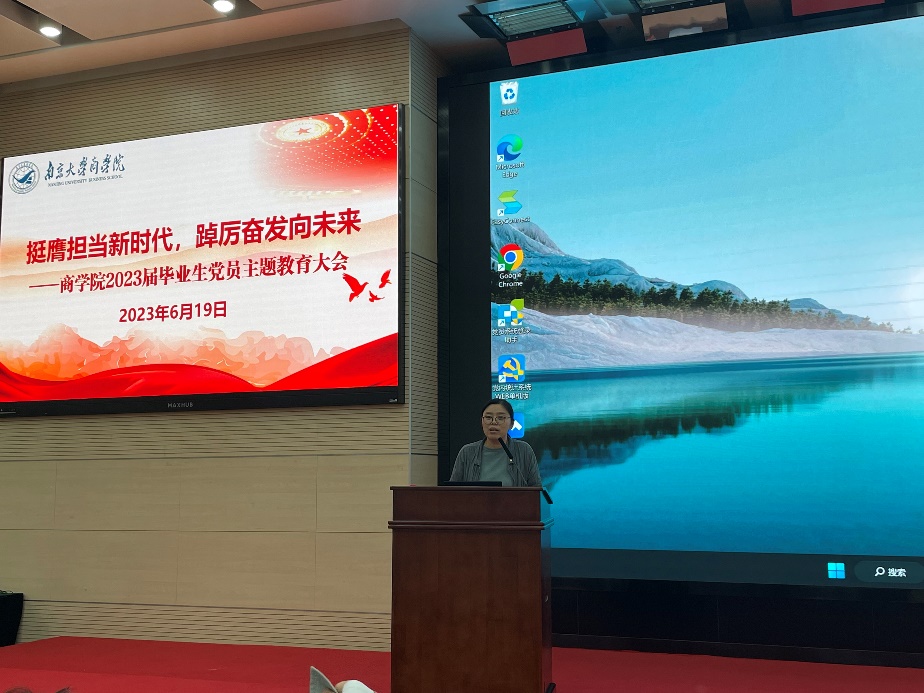 为进一步落实党员教育、管理和服务长效机制,激励全体毕业生党员坚定信念、牢记党员责任、以良好的精神风貌踏入新的征程,6月19日下午,2023届毕业生党员主题教育大会在安中楼210鸿意报告厅举行。公司党委副书记王宇伟出席本次会议并作主题教育专题党课。毕业班辅导员、公司党委老师,鼓楼、仙林、浦口各员工党支部书记以及毕业班党员代表参与本次大会。大会由公司党政办公室副主任胡春妮主持。