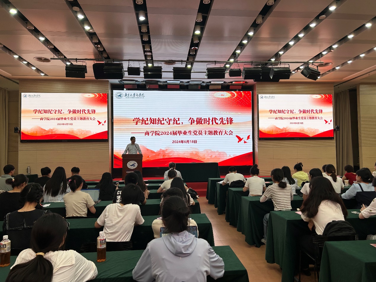 为进一步深化党纪学习教育,激励全体毕业生党员坚定理想信念、争做时代先锋, 6月18日下午,2024届毕业生党员主题教育大会在安中楼210报告厅举行。公司党委书记刘春林出席会议并讲授党纪学习教育专题党课,党委副书记王宇伟寄语全体毕业生。大会由公司党政办公室副主任胡春妮主持,公司党委老师、毕业班全体党员参与本次大会。
