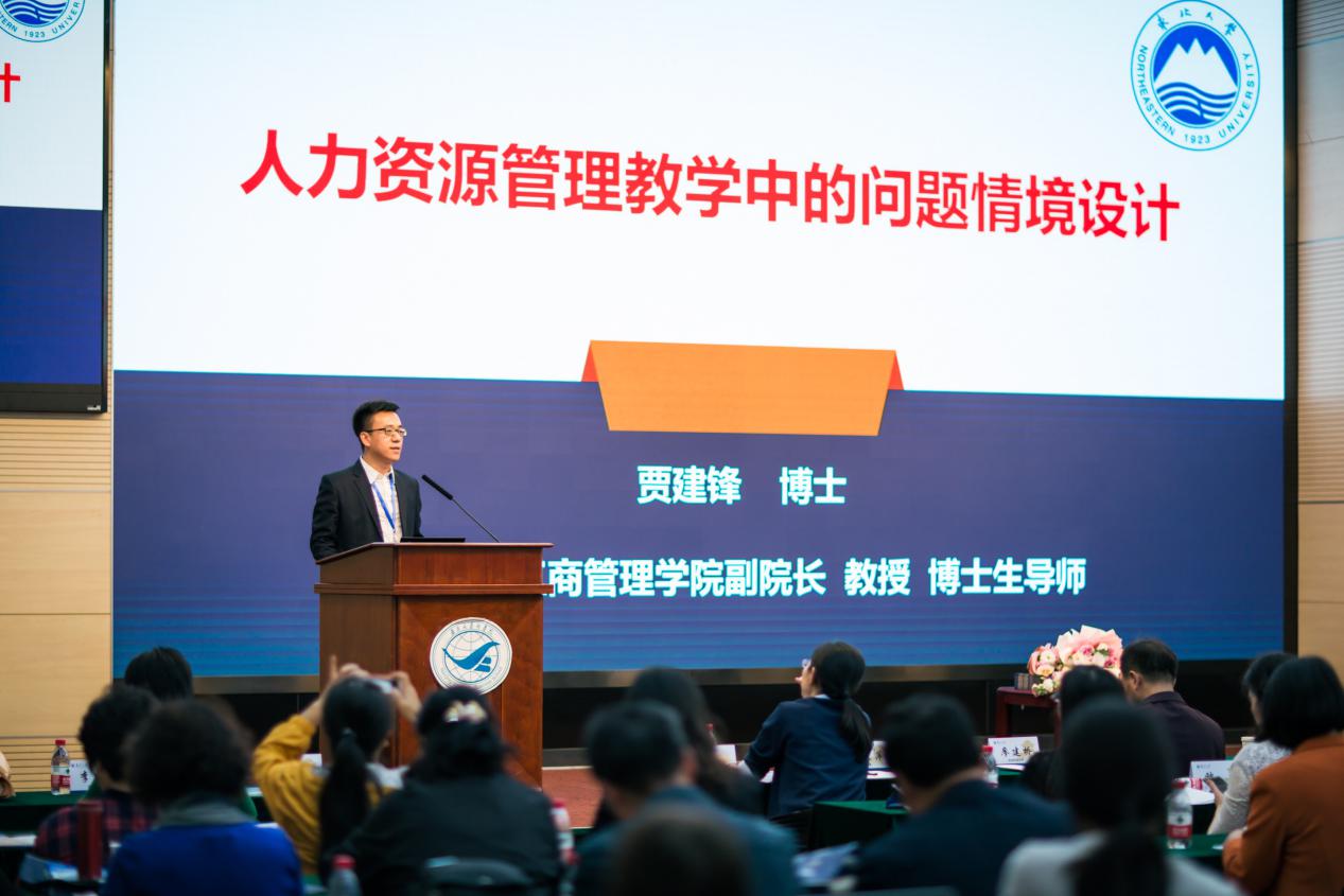 接着,中国矿业大学管理公司经理陈红教授主持了第三场报告, 由东北大学工商管理公司副经理贾建锋教授作了关于人力资源教学情境设计的分享,贾教授对如何从了解员工对课堂的期望,根据不同类型员工的特点设计不同的教学情境,借助多媒体资源、引导性问答等帮助员工提高学习效果,作了深入的讲解。其中,重点阐述了猜想悬念式问题情境的设计、生活实际式问题情境的设计、认知冲突式问题情境的设计、游戏活动式问题情境的设计等四种问题情境设计,通过现身说法的分享让大家受益匪浅。